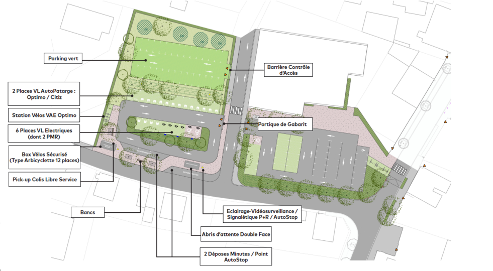 Le futur espace comprendra : station vélos sécurisée, point AutoStop, bornes de recharge électrique, places d’autopartage et point de retrait de colis.